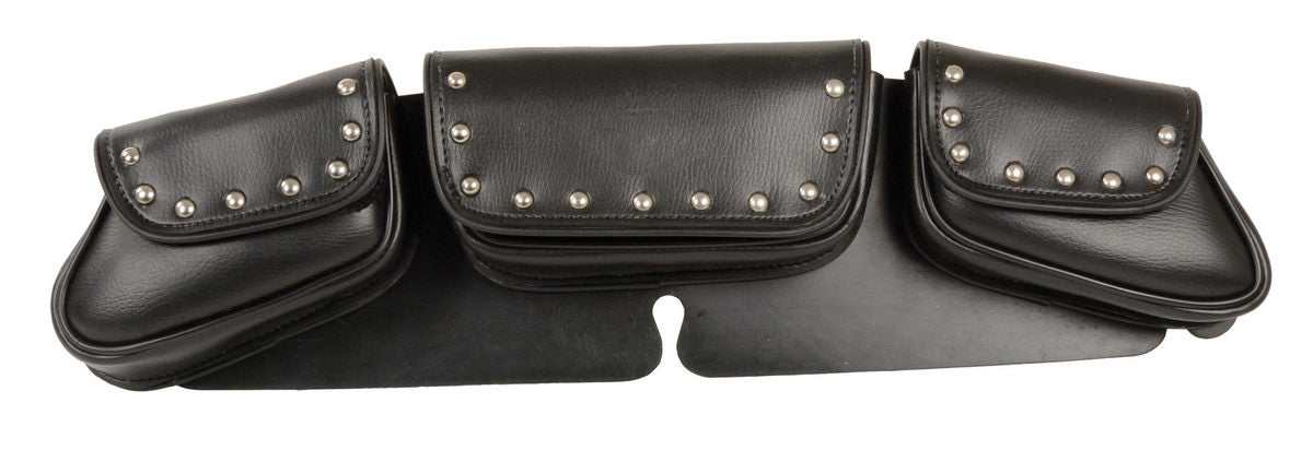Milwaukee Leather SH67105 Black Triple Pocket Studded PVC Travel Windshield Bag