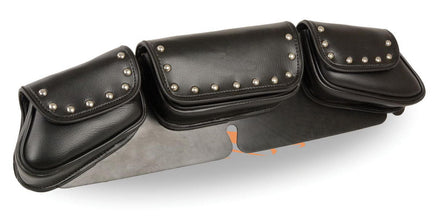 Milwaukee Leather Performance SH67105 Black Triple Pocket Studded PVC Travel Windshield Bag