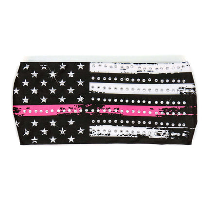 Milwaukee Leather | Bling Designed Wide Headbands-Headwraps for Women Biker Bandana with Pink Flag - MLA8033