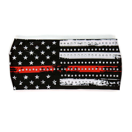 Milwaukee Leather | Bling Designed Wide Headbands-Headwraps for Women Biker Bandana with Red Flag - MLA8036