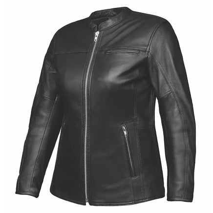 Elevate your outerwear with the Ladies Premium (Karma) Jacket by Derringer Leather, a masterpiece in luxury and functionality. Crafted from supple lambskin leather in classic black, this jacket exudes sophistication and versatility. The jacket is equipped with a black mesh lining for breathability and a full sleeve zip-out liner with silver satin lining for added warmth and comfort in cooler climates. Antique silver hardware accents and three outside pockets enhance its timeless appeal, while two inside conceal carry pockets and armor pockets provide practical storage options. Perfectly tailored in Pakistan, this jacket embodies premium craftsmanship and contemporary style.