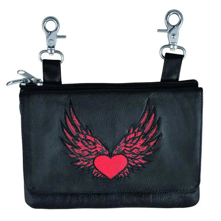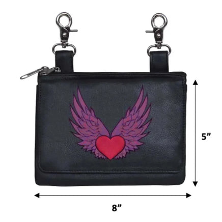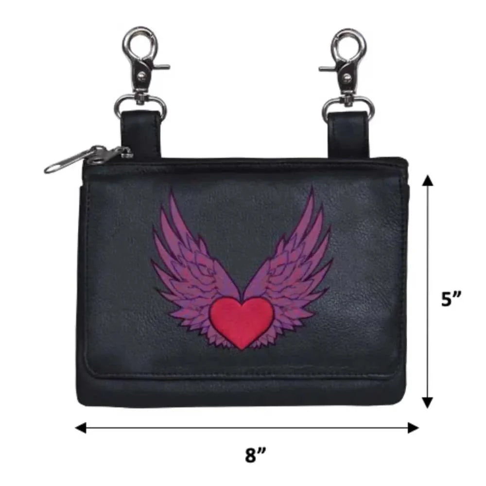 Elevate your riding gear with the Ladies Leather Clip-On Bag, meticulously crafted from luxurious cowhide leather. Designed for both functionality and style, this bag features silver hardware accents, two hook and loop clips for secure attachment, and a versatile 54" shoulder strap. Whether used on or off the bike, it offers convenient storage and a touch of elegance to your ensemble.