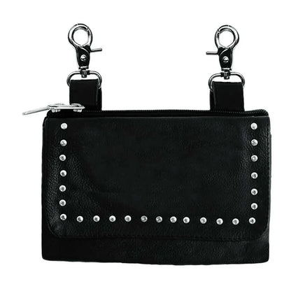 Elevate your riding gear with the Ladies Leather Clip-On Bag, meticulously crafted from luxurious cowhide leather. Designed for both functionality and style, this bag features silver hardware accents, two hook and loop clips for secure attachment, and a versatile 54" shoulder strap. Whether used on or off the bike, it offers convenient storage and a touch of elegance to your ensemble.