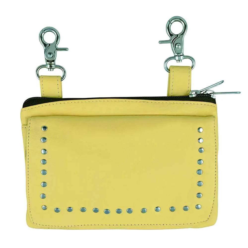 Elevate your riding gear with the Ladies Leather Clip-On Bag, meticulously crafted from luxurious cowhide leather. Designed for both functionality and style, this bag features silver hardware accents, two hook and loop clips for secure attachment, and a versatile 54" shoulder strap. Whether used on or off the bike, it offers convenient storage and a touch of elegance to your ensemble.
