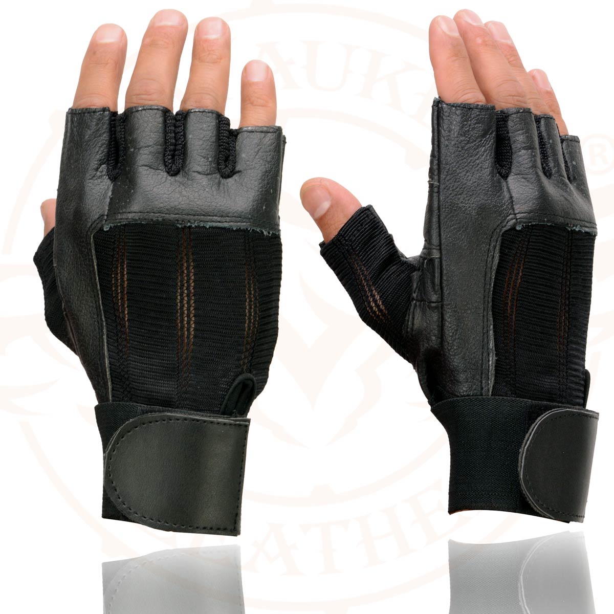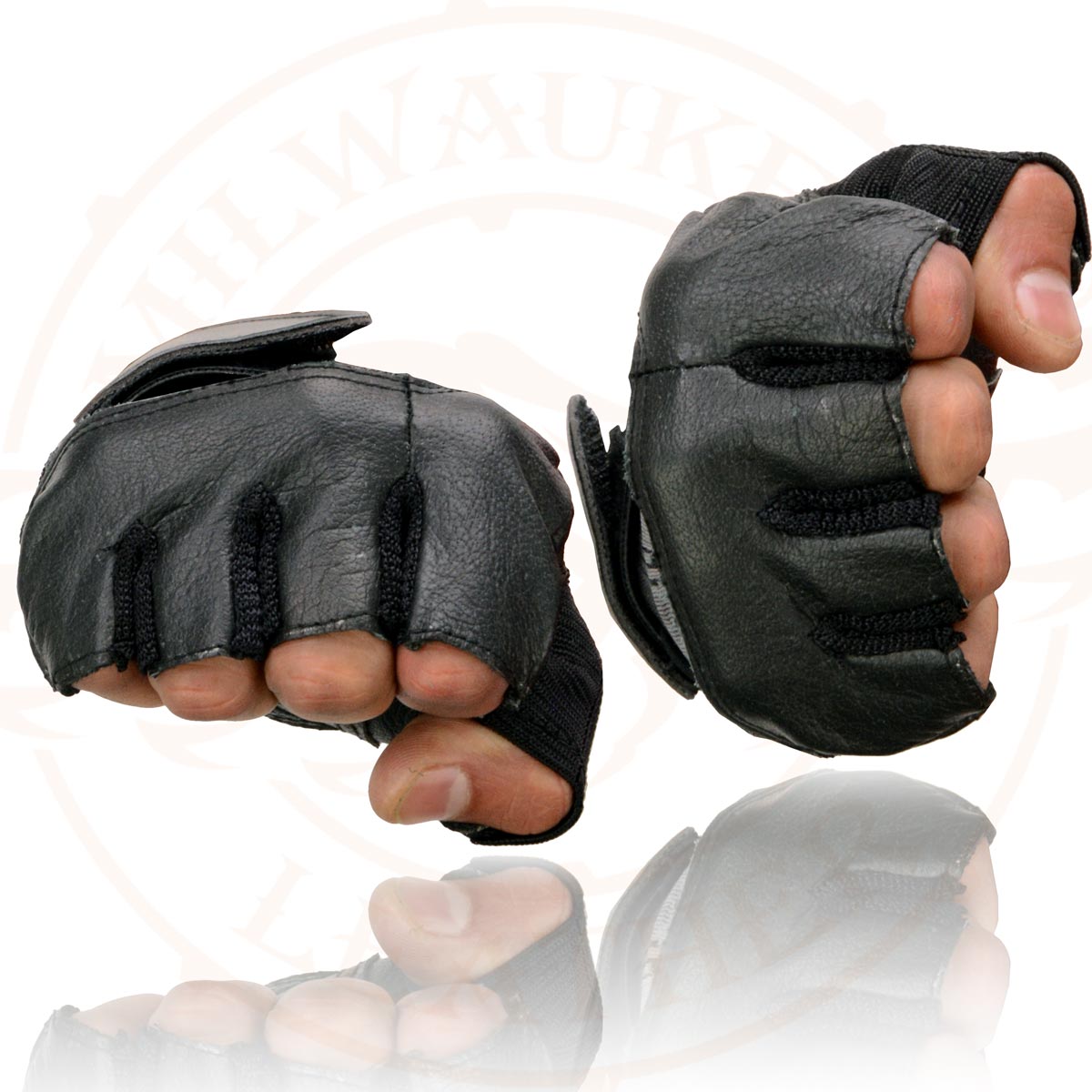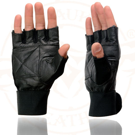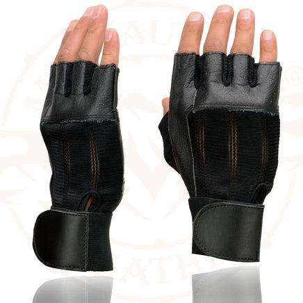 Milwaukee Leather MG7562 Men's Black Leather and Spandex Fingerless Motorcycle Gloves with Gel Padded Palm