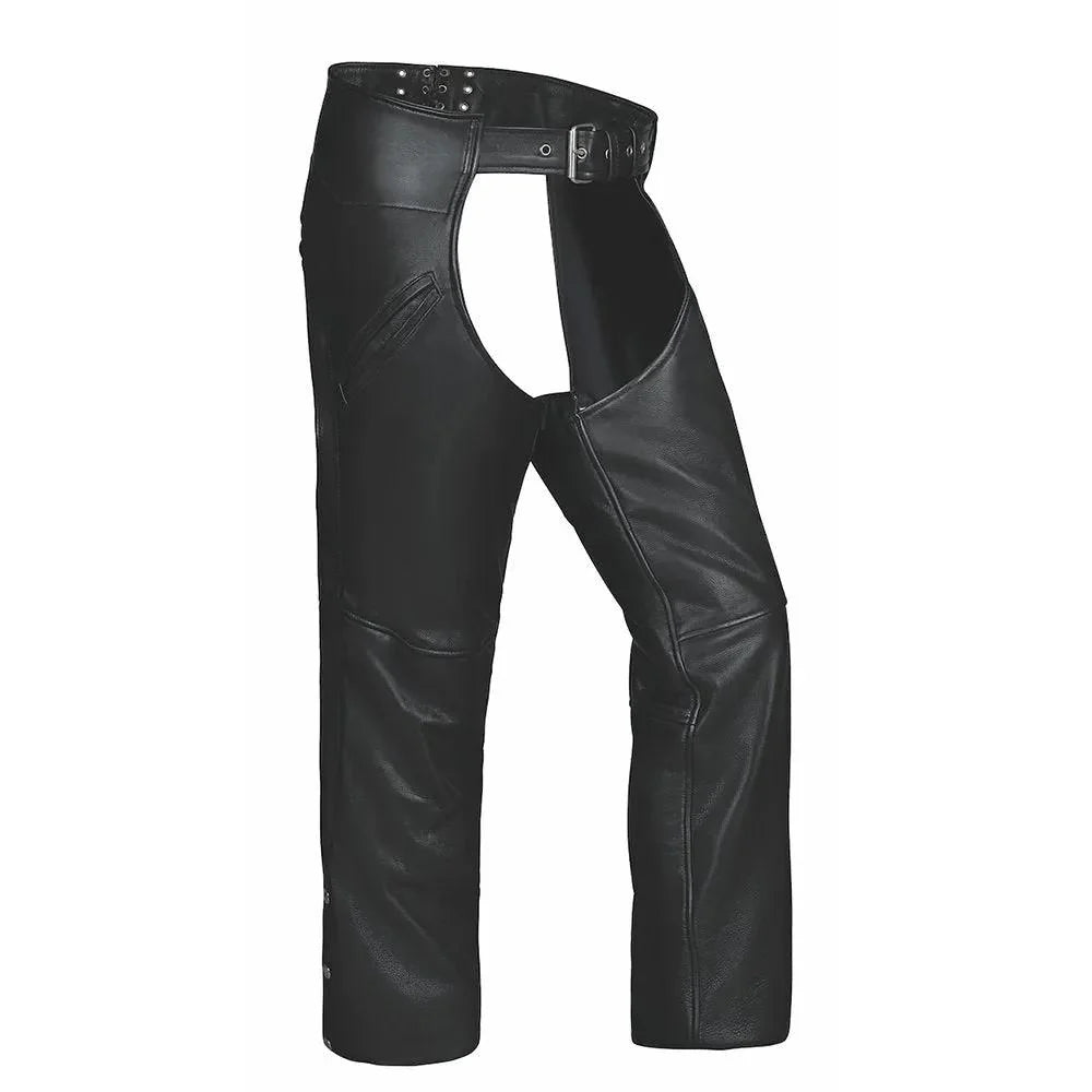 Premium leather chaps designed for durability and style. With reinforced stitching, silver hardware, and an adjustable fit, these chaps are ideal for bikers.