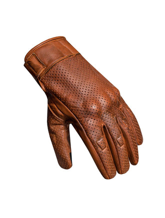Men's Perforated Brown Leather Motorcycle Gloves for Riding High Strength Knuckle Protection