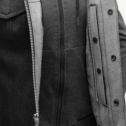 The Essex is a Rough Neck Raw Denim vest with a removable sweatshirt, because who doesn't love versatility? The club style motorcycle vest is unlined, so it's perfect for layering with our heavyweight hoodie. Of course, it's got our conceal carry pockets, along with four exterior pockets.