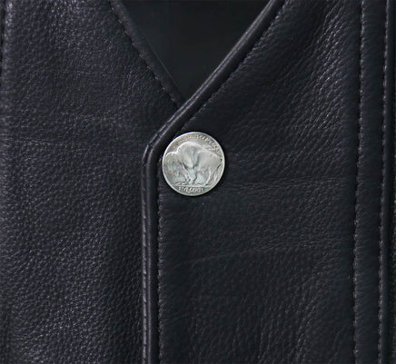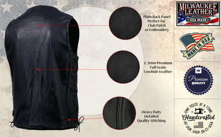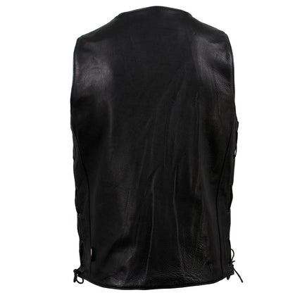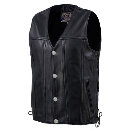 Milwaukee Leather USA MADE MLVSM5005 Men's Black 'Road Whip' Premium Motorcycle Leather Vest with Buffalo Snap Buttons