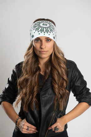 Ladies EZ Bandz By Hair Glove Green - White sunrise paisley with Gems