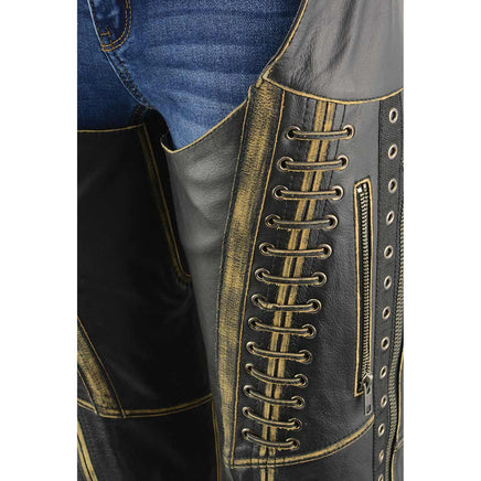Milwaukee Leather MLL6527 Women's 'Laced & Star Accents' Distressed Brown Motorcycle Leather Chaps