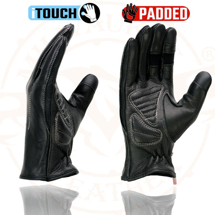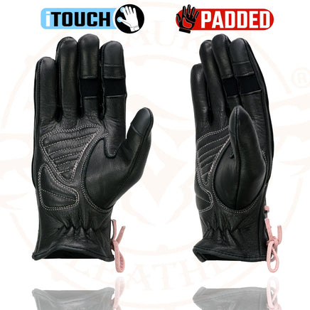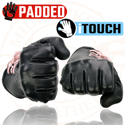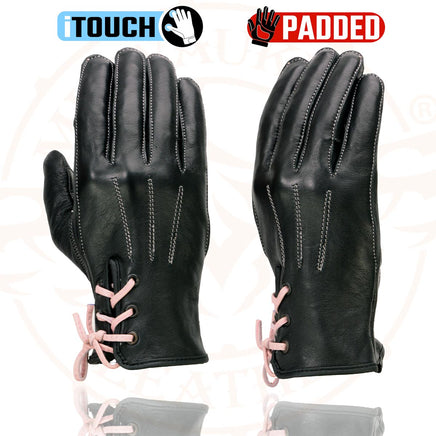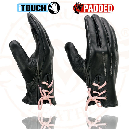 Milwaukee Leather MG7772 Women's Black/ Fuchsia ’I - Touchscreen Compatible’ Laced Wrist Motorcycle Hand Gloves W/ Gel Palm