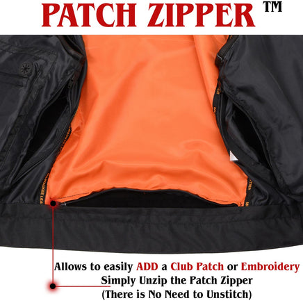 - Patented Patch Pocket | Our leather motorcycle riders vest features inside patented Patch Access Zipper Openings Making Patch Sewing Easier| Patch Access Technology Allows to Easily Add a Patch or Embroidery artwork without damaging the garment.
