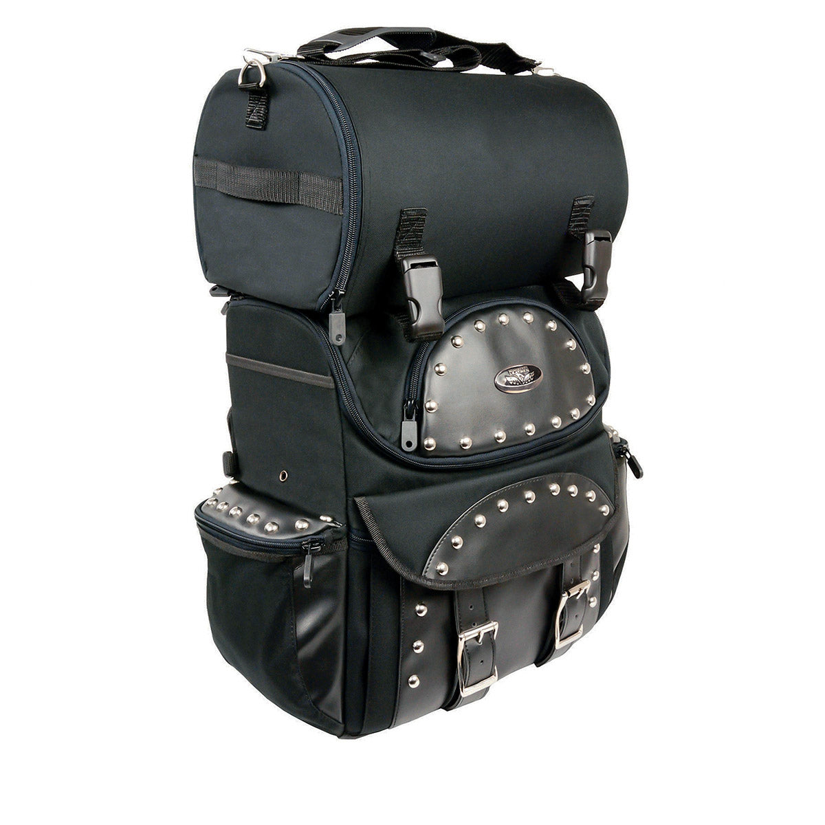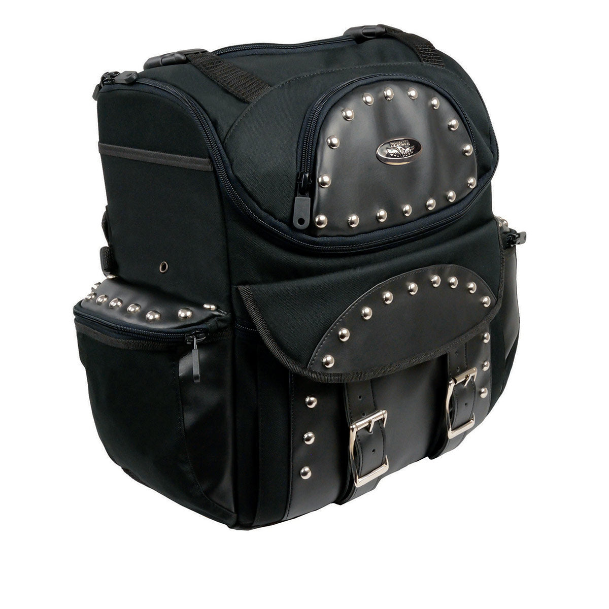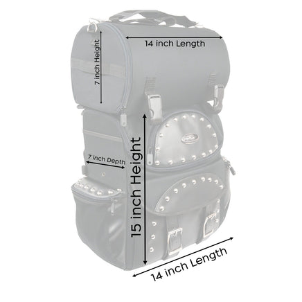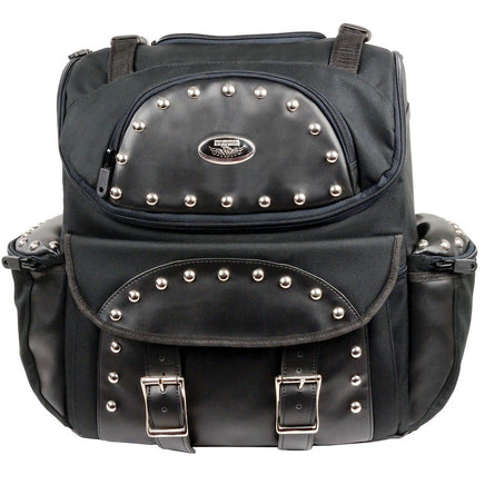 Milwaukee Leather SH602S Medium Black Textile Two Piece Studded Touring Sissy Bar Motorcycle Bag