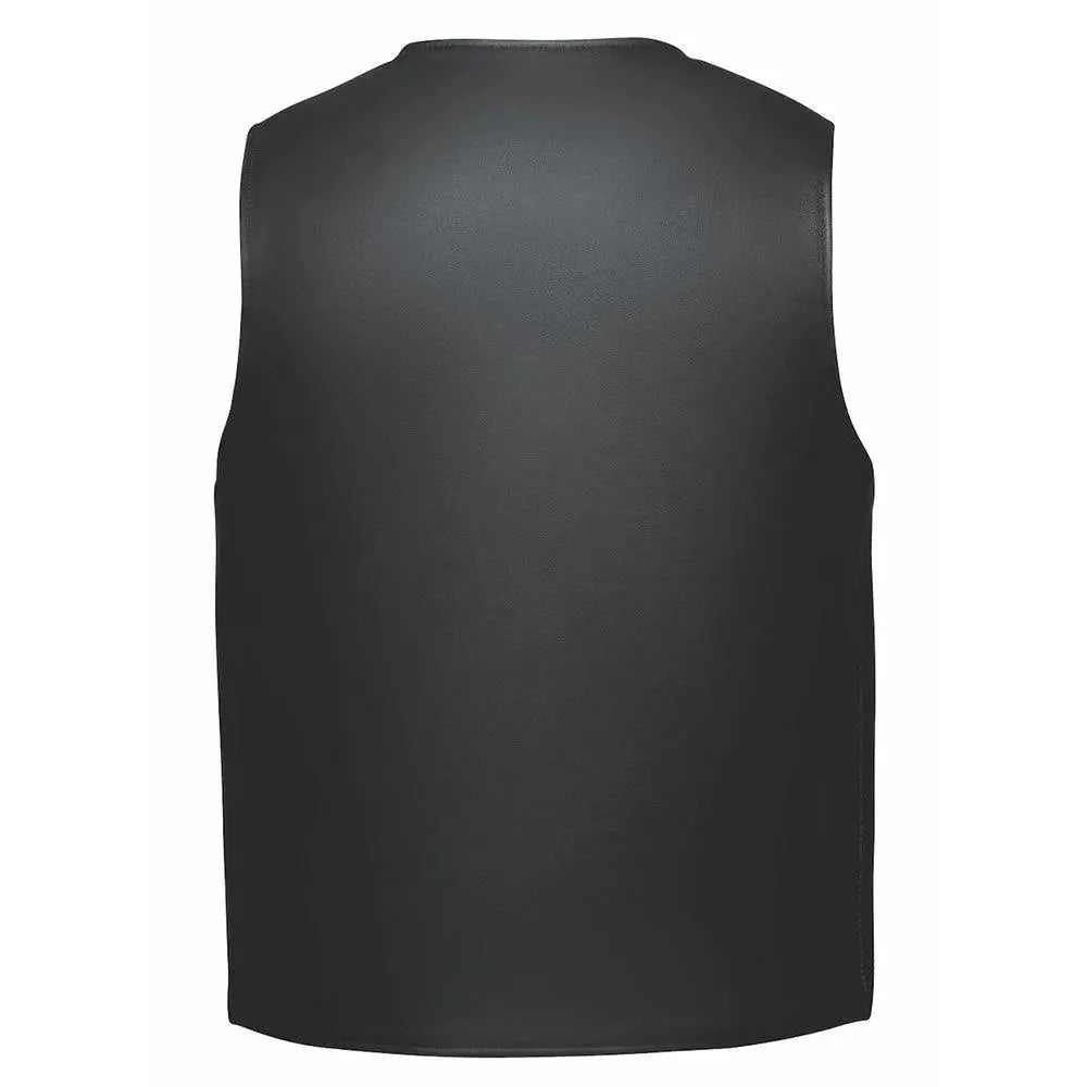 The Men's Premium Traditional Snap Front Vest by Unik Leather Apparel offers a blend of classic design and practical features. Made from cowhide leather, it includes two exterior pockets, two interior concealed carry pockets, black hardware for a polished appearance, and plain sides for comfort, making it suitable for various occasions.