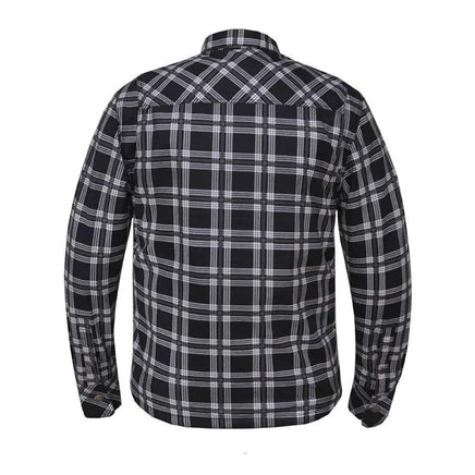 This Style by redefines comfort and functionality with its black and white flannel shirt design. This versatile garment seamlessly blends style with motorcycle-ready features, making it a standout choice for riders and fashion-conscious individuals alike. This flannel shirt not only meets the demands of motorcycle riders with its protective features but also appeals to anyone seeking a stylish yet functional addition to their wardrobe.